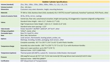 Stainless steel CVD/ALD cylinder (bubbler), 150ml, vertical, electropolished with fill-port, high temp valves (315°C), 98-0271 | Chempure