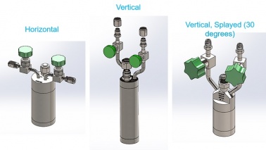 Stainless steel CVD/ALD cylinder (bubbler), 150ml, vertical, electropolished with fill-port, high temp valves (315°C), 98-0271