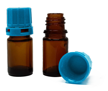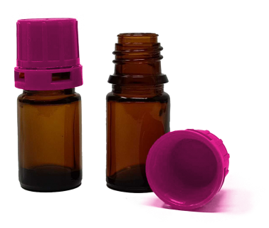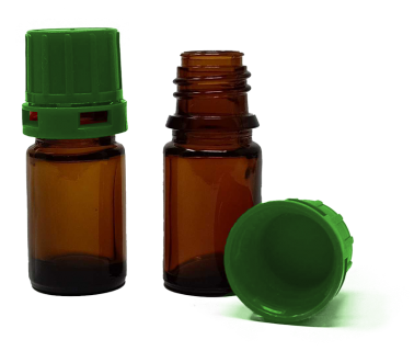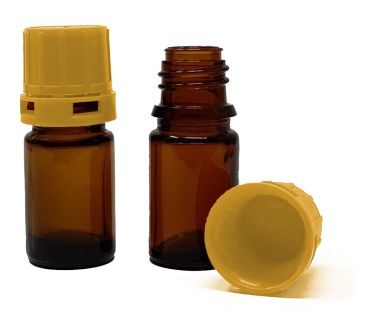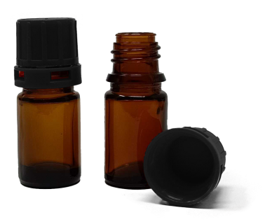 5 ml Amber Narrow Mouth Chemical Storage / Shipment Bottles with Tamper Evident 18mm Caps, Leak Proof, Smartottles®
