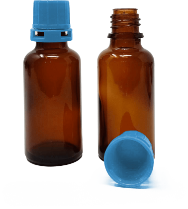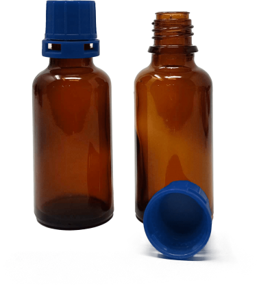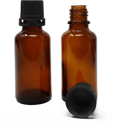 30ml Amber Narrow Mouth Chemical Storage / Shipment Bottles with Tamper Evident 20mm Caps, Leak Proof, Smartottles®